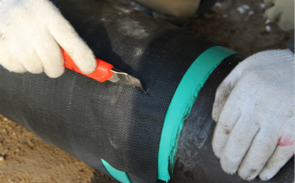 其基材獨(dú)特,是改性聚丙烯網(wǎng)狀增強(qiáng)編織纖維土工布,優(yōu)質(zhì)的基材具有抗紫外功能,130g/cm2的編織經(jīng)緯密度95x60根/cm2,厚度0.35mm;260g/cm2的編織經(jīng)緯密度56x56根/cm2,厚度0.65mm。是用梭織機(jī)(平織機(jī))制成的,而不是圓織機(jī)做的。好的土工布基材平整,有利于復(fù)合膠粘劑時(shí)粘基力大,不會出現(xiàn)聚丙烯纖維防腐膠帶的分層現(xiàn)象。