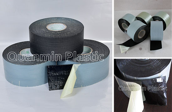 依據(jù)SY/T0414-2017《鋼質(zhì)管道聚烯烴膠粘帶防腐層技術(shù)標(biāo)準(zhǔn)》,術(shù)語確定帶有離型紙(隔離紙/膜),防腐膠粘劑厚度≥70%總厚度的防腐膠帶。如:基材為聚乙烯厚度0.25mm,膠層厚度0.75mm,總厚度1.00mm的聚乙烯防腐膠帶;基材為聚丙烯增強(qiáng)纖維厚度0.30mm,膠層厚度0.70mm,總厚度1.00mm的聚丙烯增強(qiáng)纖維防腐膠帶,同屬厚膠型防腐膠帶。根據(jù)防腐層等級(jí)厚度可任選不同厚度的厚膠型防腐膠帶。